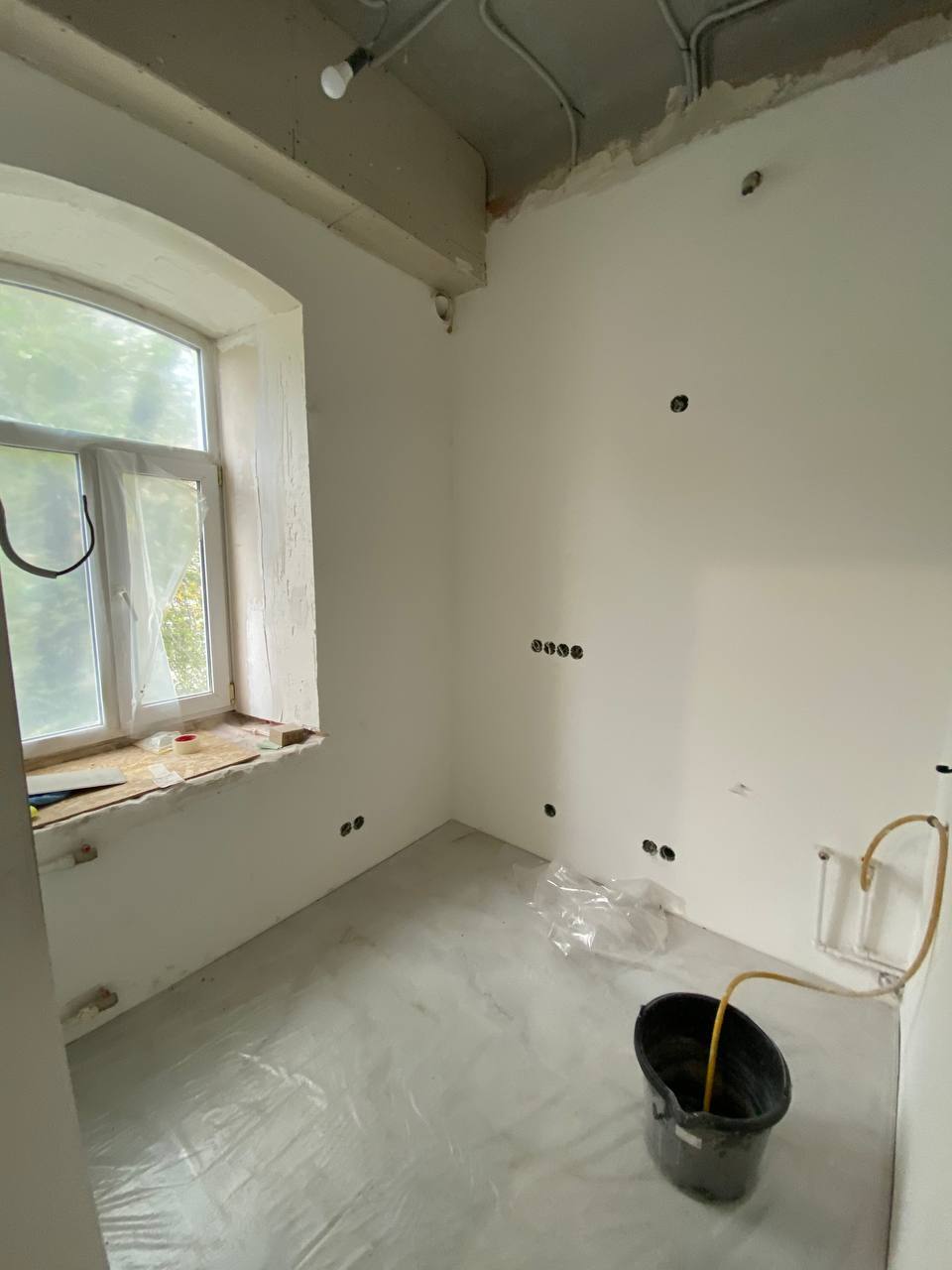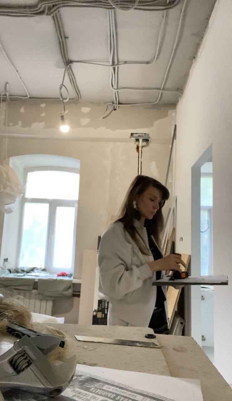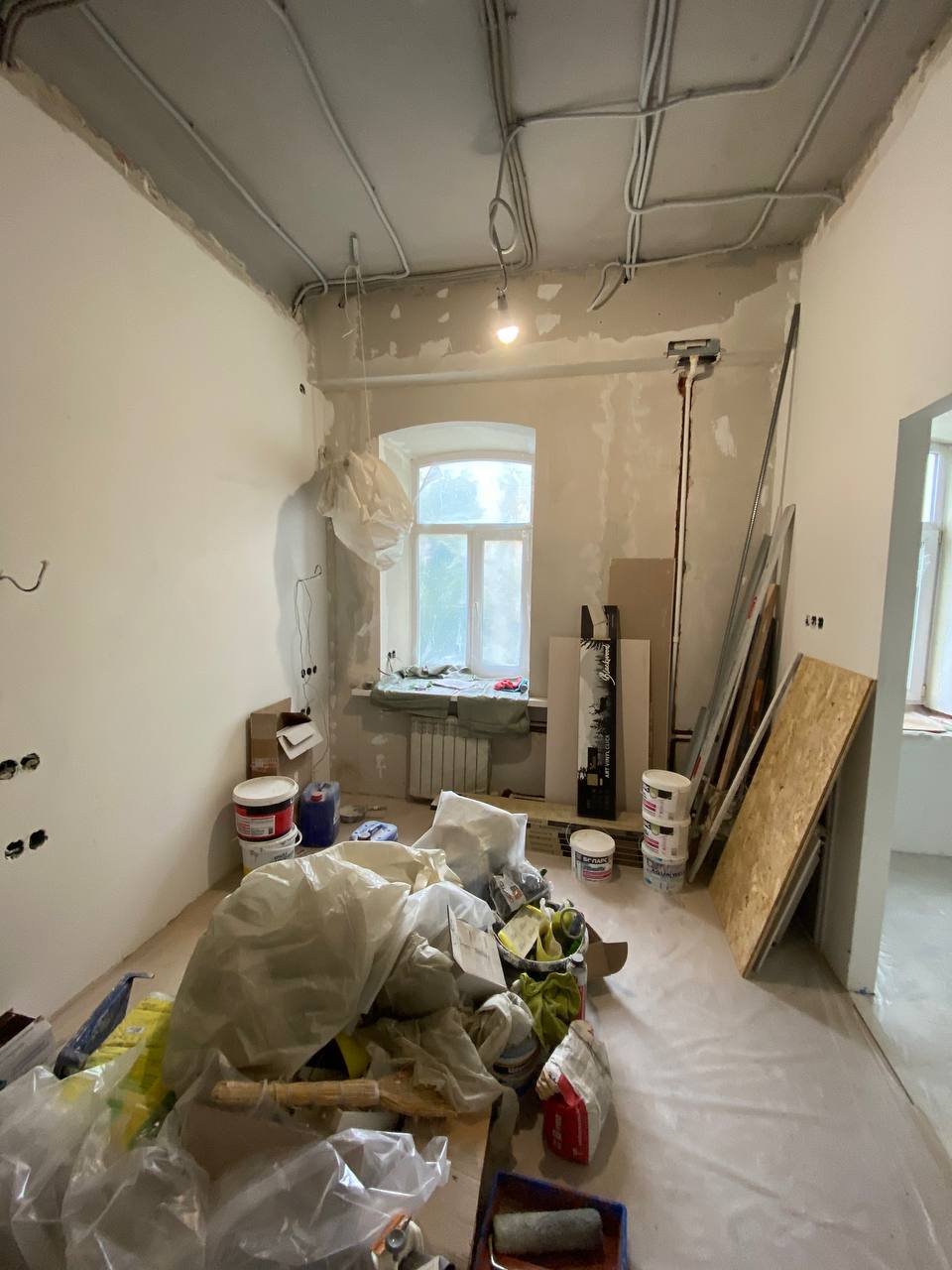 Работу мы начали уже после того, как заказчик выполнил монтажные работы: перегородки были возведены, сделана электрика, сантехника и отделка санузла. Ранее квартира это была трёхкомнатная сталинка, потом ее разделили на три отдельные части.