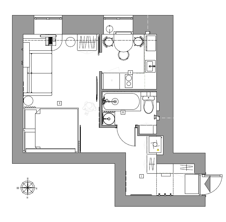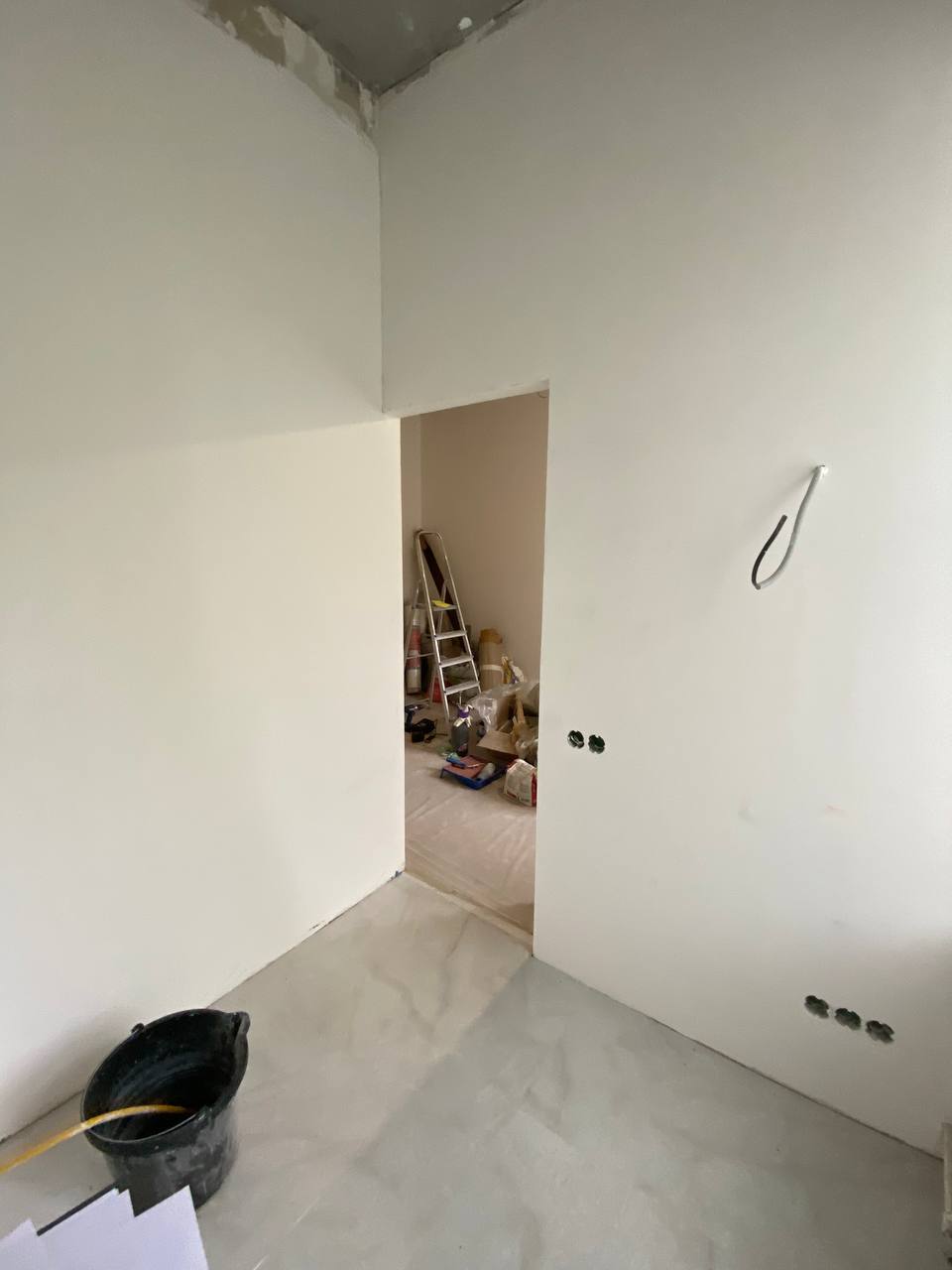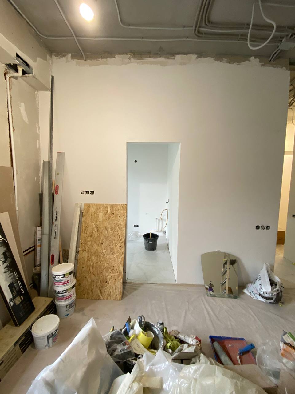 Работу мы начали уже после того, как заказчик выполнил монтажные работы: перегородки были возведены, сделана электрика, сантехника и отделка санузла. Ранее квартира это была трёхкомнатная сталинка, потом ее разделили на три отдельные части.
