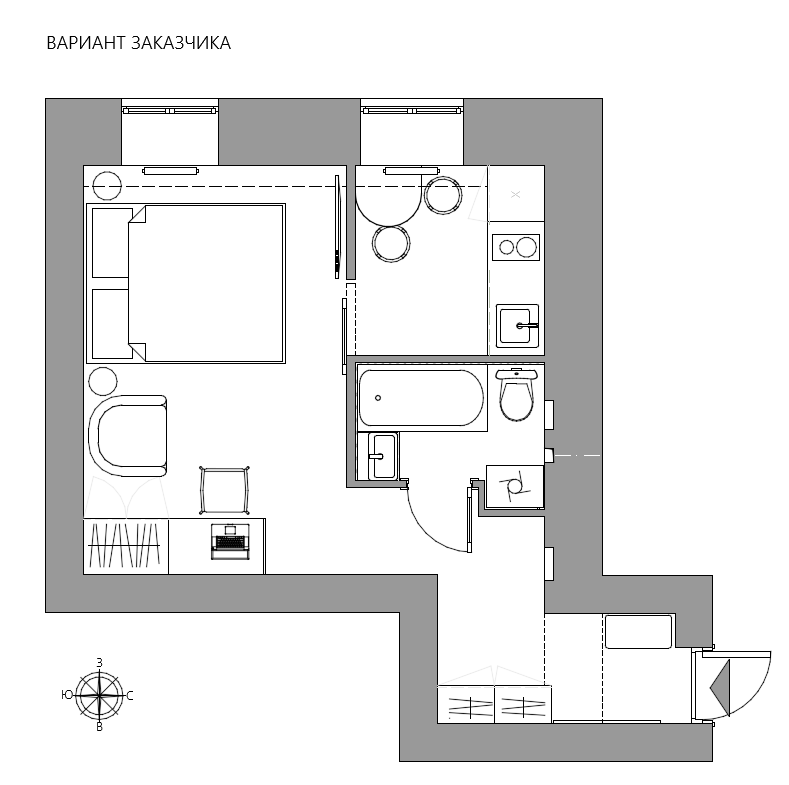 Мы предложили шесть планировочных вариантов — от максимально функциональных до нестандартных по зонированию. После обсуждения заказчик понял, что даже в уже отремонтированном пространстве можно найти решения, которые делают квартиру гораздо удобнее и логичнее.