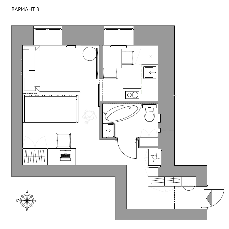 — предусмотреть обеденную зону на троих;