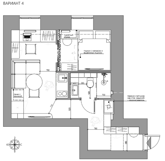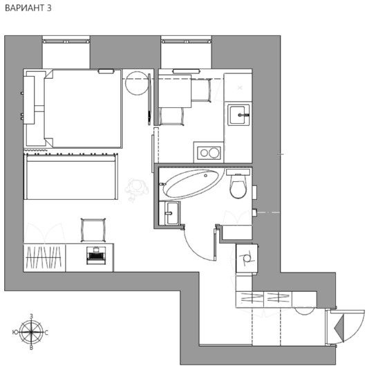 Продуманная планировка превращает даже 20 квадратов в полноценное, уютное жильё.