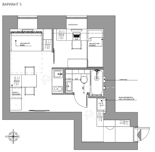 — предусмотреть обеденную зону на троих;