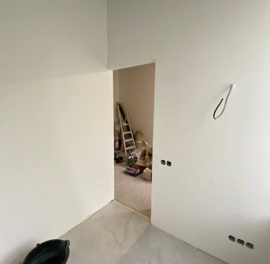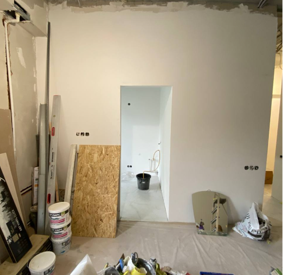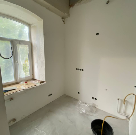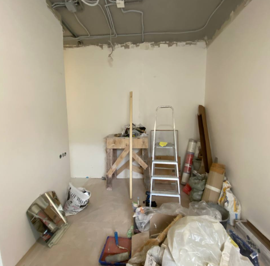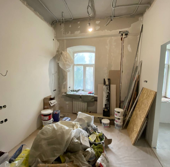 Работу мы начали уже после того, как заказчик выполнил монтажные работы: перегородки были возведены, сделана электрика, сантехника и отделка санузла. Ранее квартира это была трёхкомнатная сталинка, потом ее разделили на три отдельные части.